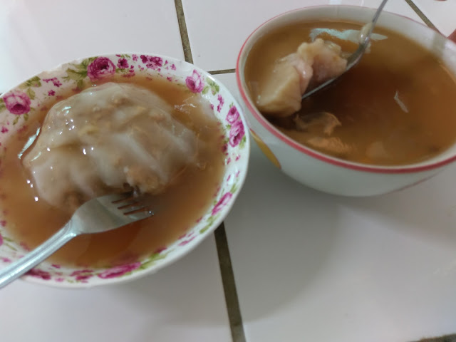 陳蝦仁肉圓、碗粿,算安平當地人的排隊美食吧?有些熟客還會主動幫忙忙碌的老闆收拾內用碗碟,和老闆搏感情,但老闆出菜還是按排隊順序的。蝦仁肉圓一顆 10 元,碗粿一份 25 元,在地人似乎都會配上一碗四神湯,也是經過安平一帶可以嘗試的好味道。